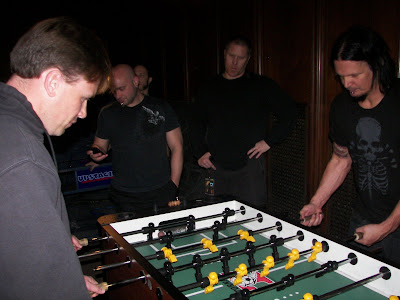A little Fooseball before their show with the 979X Winners